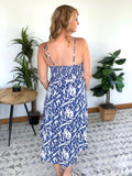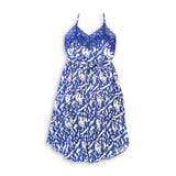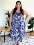 Wear this incredible dress to your next date night! The sleeveless tie-dye woven dress has a v-neck with a stunning lace trim detail. It features an adjustable self tie belt and adjustable straps so you can get the perfect fit for you. Style this dress with sandals and your favorite necklace.