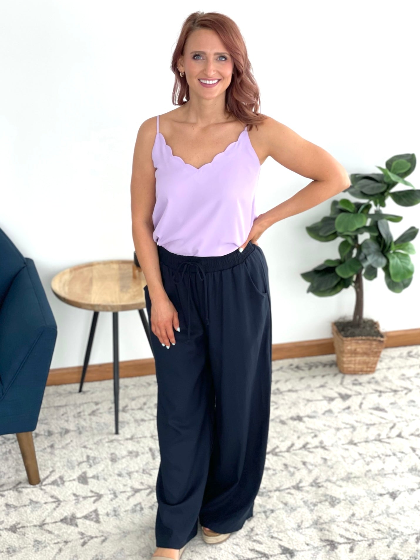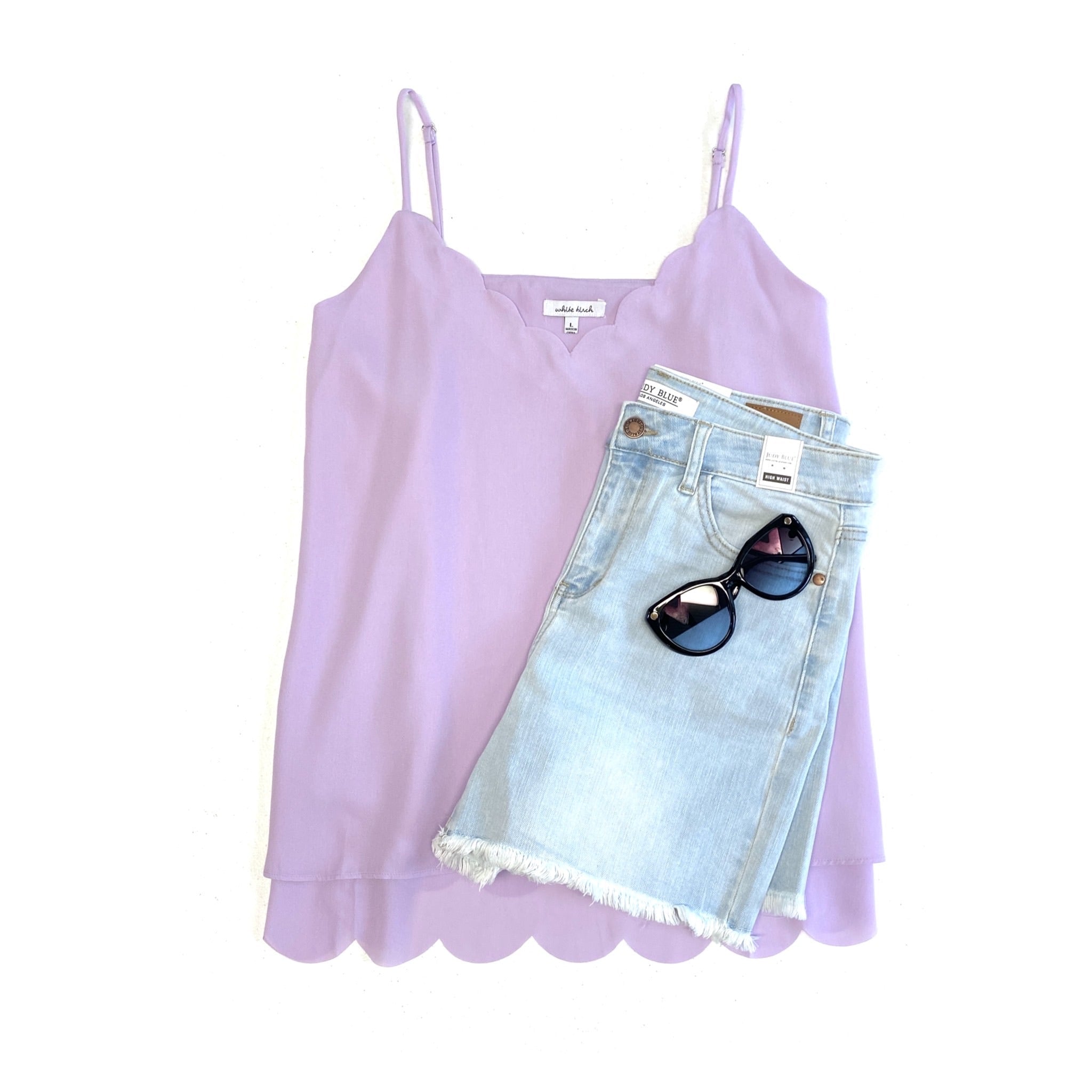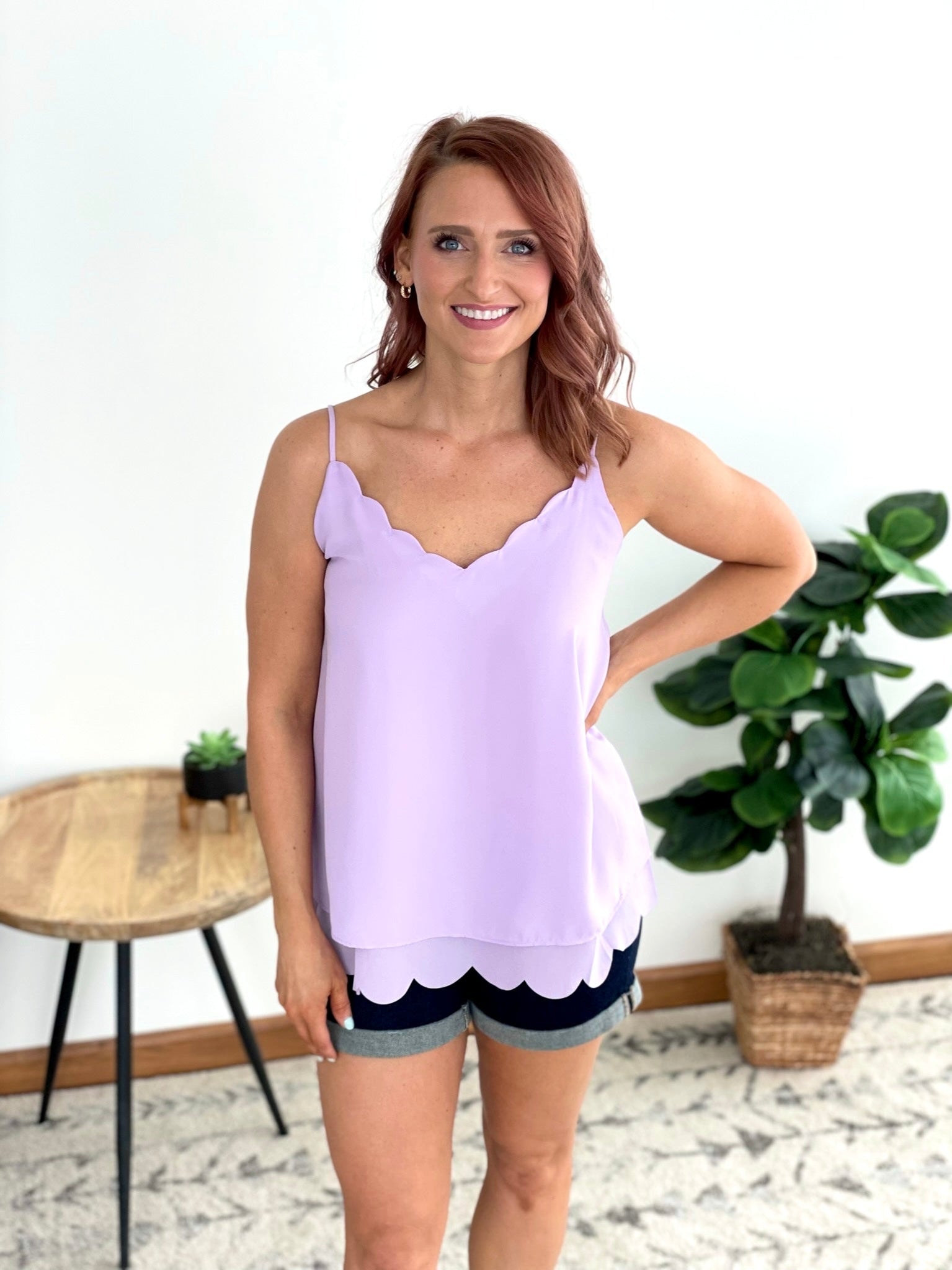 The scalloped neckline and hemline gives you a modern and feminine style. It has adjustable straps to give you the perfect fit. Wear this versatile cami with jeans, shorts or a skirt for everyday wherever you go.